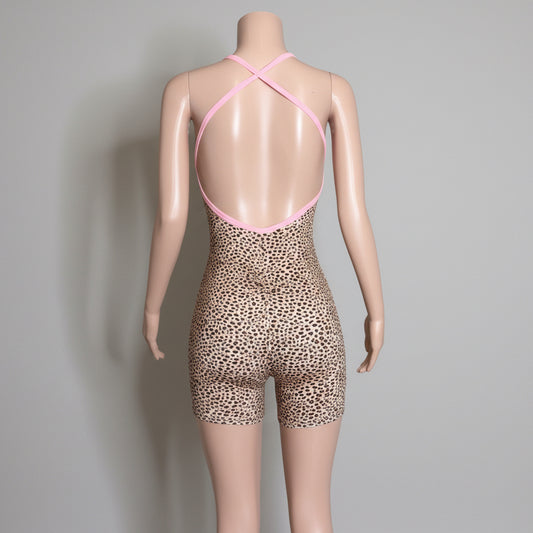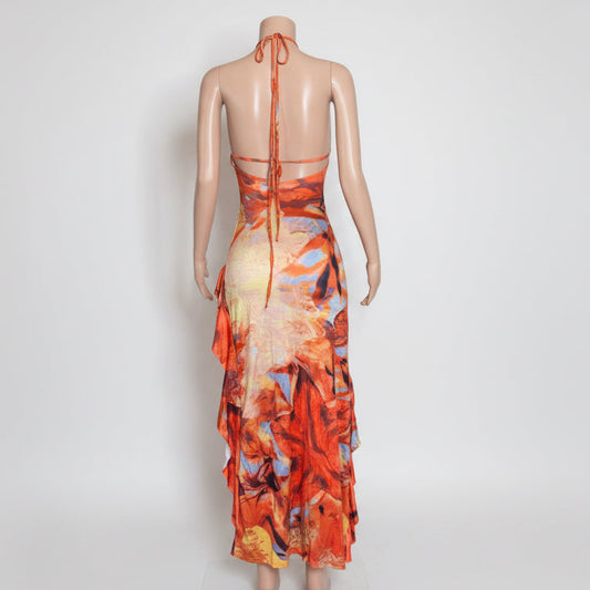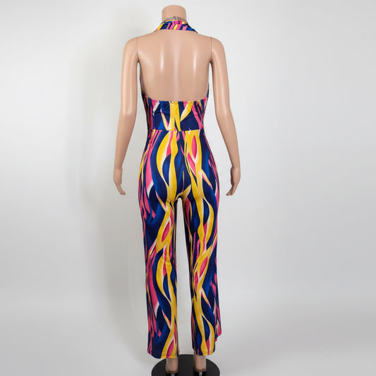 Colorblock Deep V-Neck Halter Backless Jumpsuit